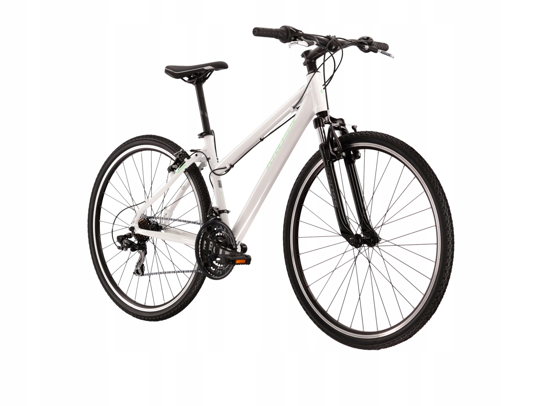 Wyposażony w komponenty marki Shimano, Kross Evado 1.0 zapewnia płynne działanie napędu – zarówno w ruchu miejskim, jak i podczas leśnych wycieczek. 21 przełożeń (3×7) pozwala dobrać odpowiedni bieg do każdego terenu. Amortyzowany widelec ze skokiem 30 mm niweluje drgania i zwiększa komfort na wybojach. Rower posiada 28-calowe koła z oponami Mitas Gripper o szerokości 42 mm – idealne zarówno na asfalt, jak i na leśne ścieżki.