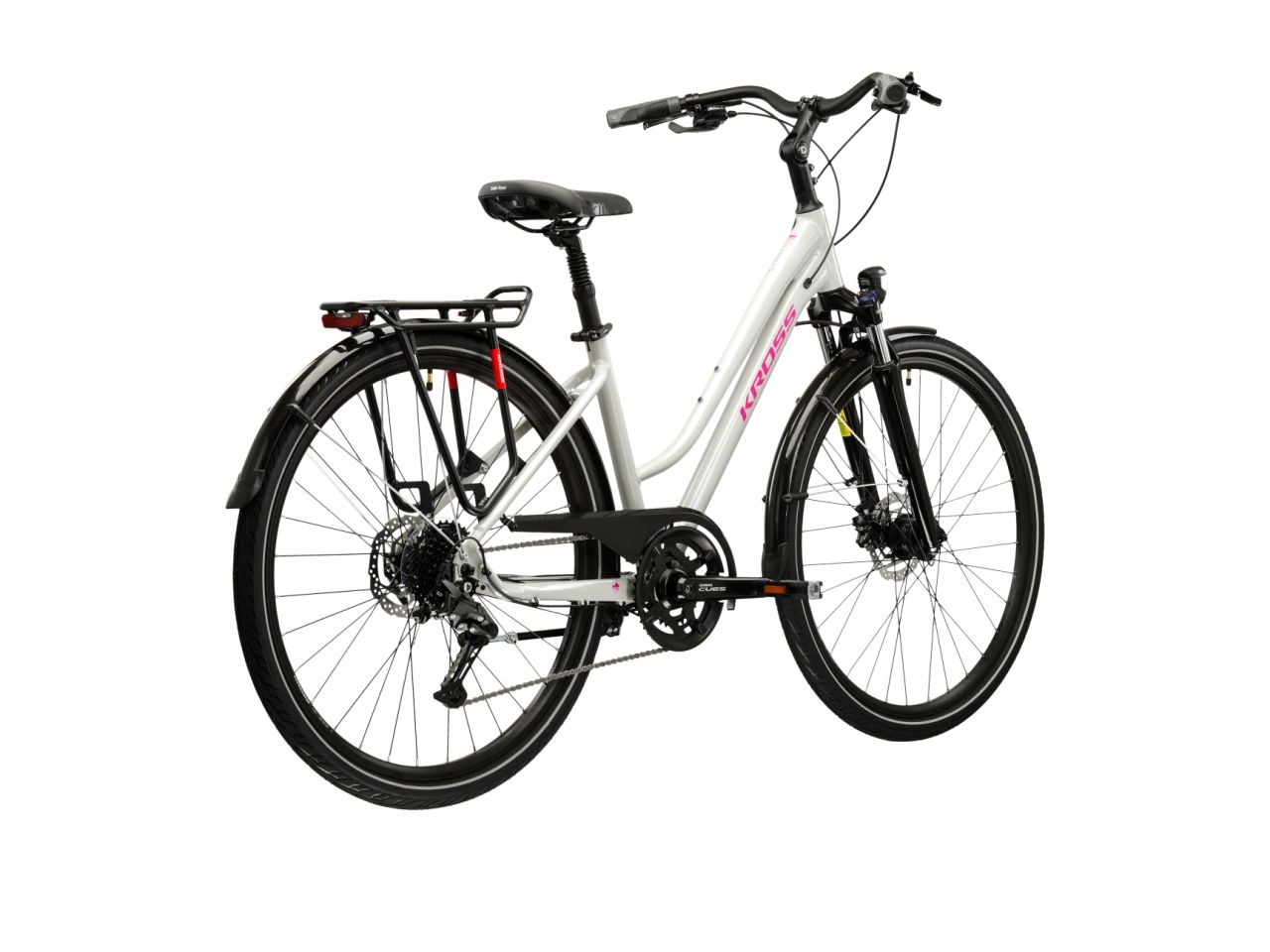 KROSS Trans 5.0 to rower turystyczny łączący cechy przydatne podczas rekreacyjnych wypraw, jak i codziennego zastosowania. Lekka, aluminiowa rama oraz amortyzowany widelec SR Suntour zapewniają komfort jazdy zarówno po asfalcie, jak i w trudniejszym terenie. Napęd Shimano Cues w systemie 2×9 umożliwia płynne dostosowanie przełożeń do każdej trasy, a hydrauliczne hamulce tarczowe gwarantują bezpieczeństwo i kontrolę. KROSS Trans 5.0 został zaprojektowany, aby zapewnić jak największy poziom komfortu zarówno podczas wypraw za miasto, jak i podczas dojazdów do pracy.